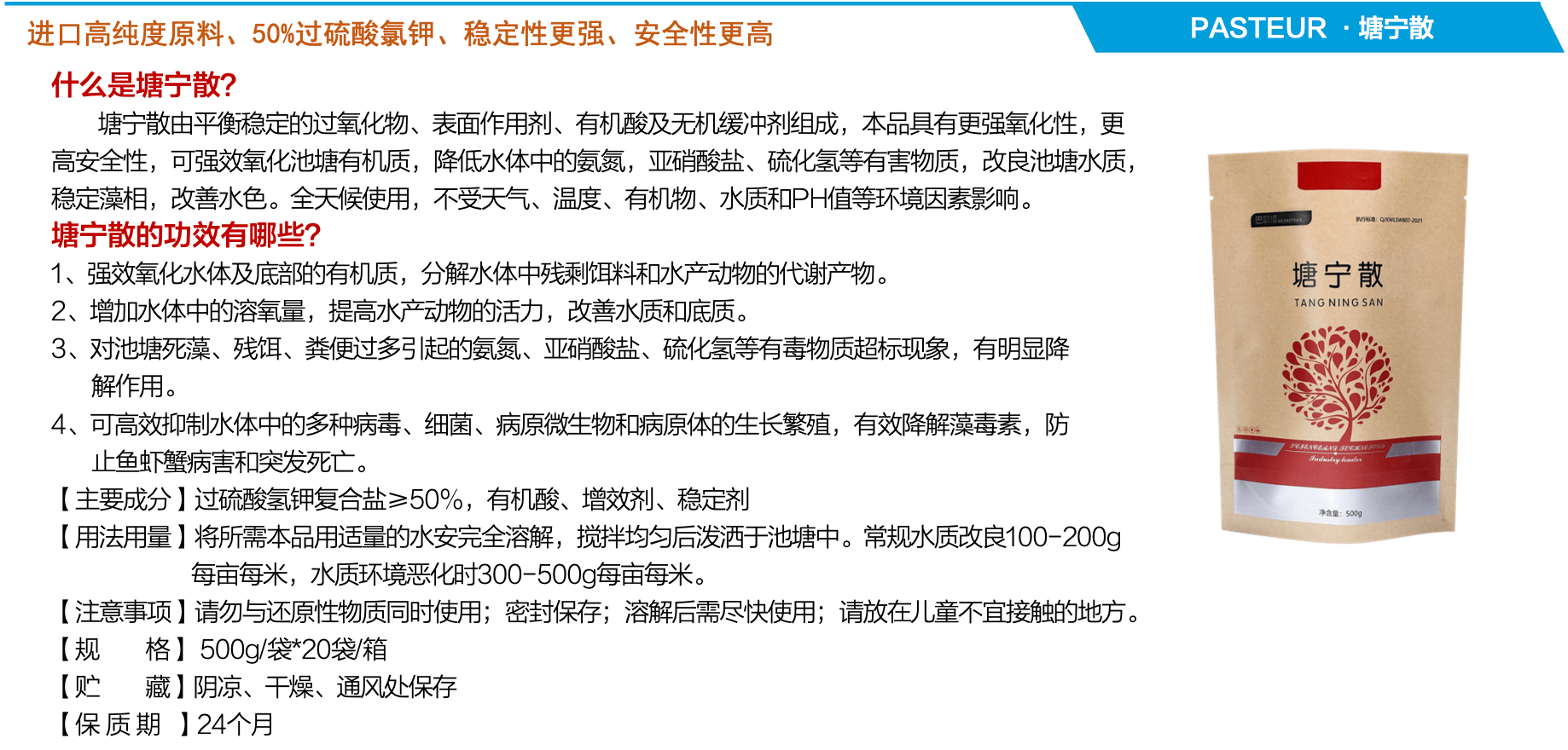 1. 消毒:我们可以使用诸如塘宁散等消毒方法,快速而有效地杀灭水中的弧菌。一般养殖面积比较大,弧菌感染严重超标,可以优先使用塘宁散,大概10小时后再使用我们的“蛭弧菌”,很快就可以控制弧菌了。